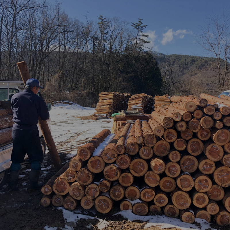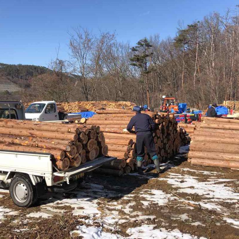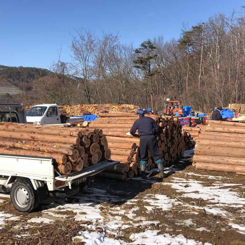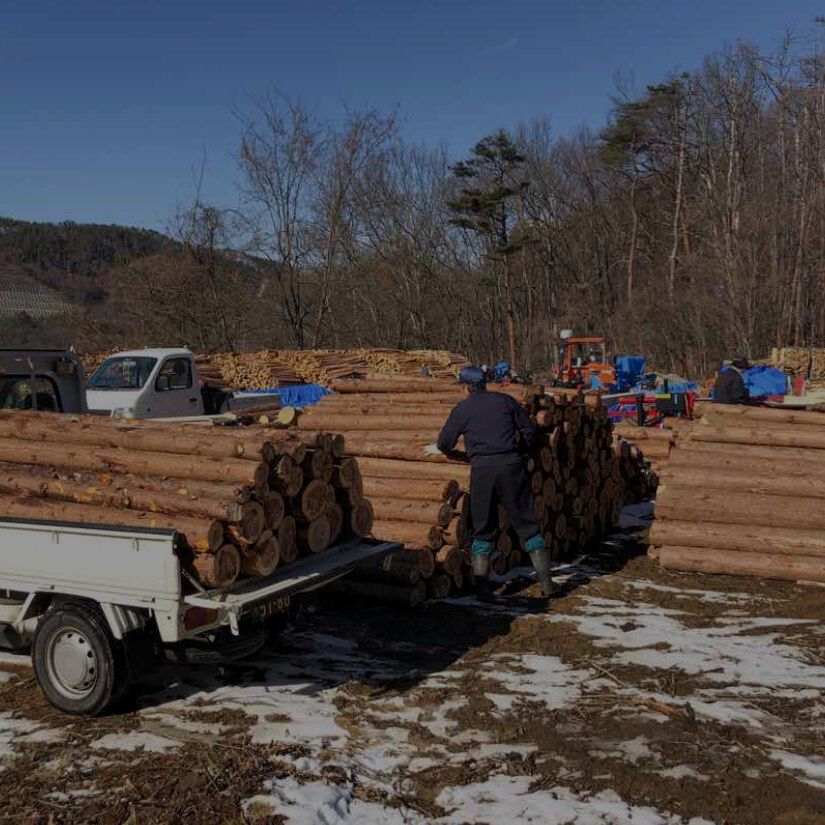 「軽トラとチェンソーで晩酌を」を合言葉に間伐材や小径木の買取を行います。
